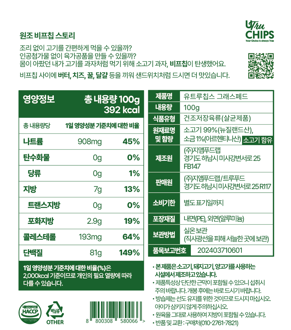트루푸드 그래스페드 비프칩은 특별한 제조방식을 고수합니다.