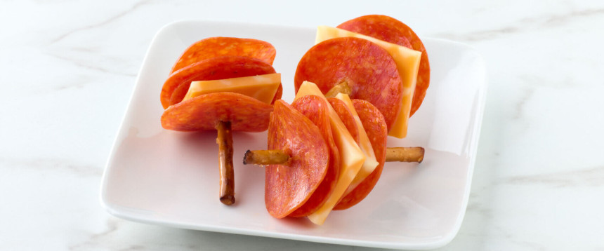 Pepperoni And Cheese Pretzel Skewers